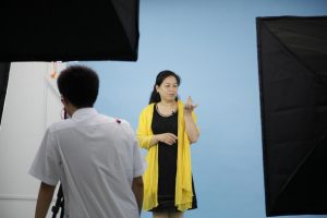 在中午的时候,根据大家的脚本创意情况,选择了部分老师在我们公司摄影棚进行了拍摄,让老师们体验到摄影棚拍摄的妙趣,并让摄影棚与培训会现场进行了连接,使没有参与拍摄的老师们不出培训会现场也能看到摄影棚实时拍摄情况。